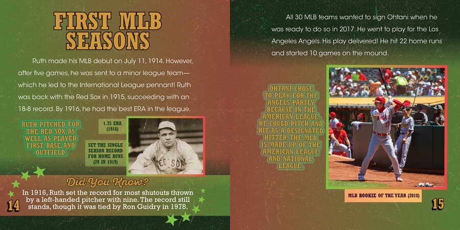 Is it possible to compare athletes from different eras to one another? Shohei “Showtime” Ohtani started playing in Major League Baseball in 2018. Babe Ruth started playing professional baseball almost 100 years before that! None the less, both men are considered giants in the game. In this captivating book, readers put Ohtani and Ruth side by side and compare their stats, careers, and more, and try to decide for themselves whether either man can be called the greatest baseball player of all time! Full-color photographs and historical photographs add to the clash in eras and show some of the best baseball action in history.